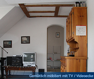 besteht aus einer gepflegten grossräumigen Wohnküche, einem Wohnzimmer, einem gepflegtem Toilettenraum mit Dusche/Bad und 3 Schlafzimmern mit je einem Doppelbett.